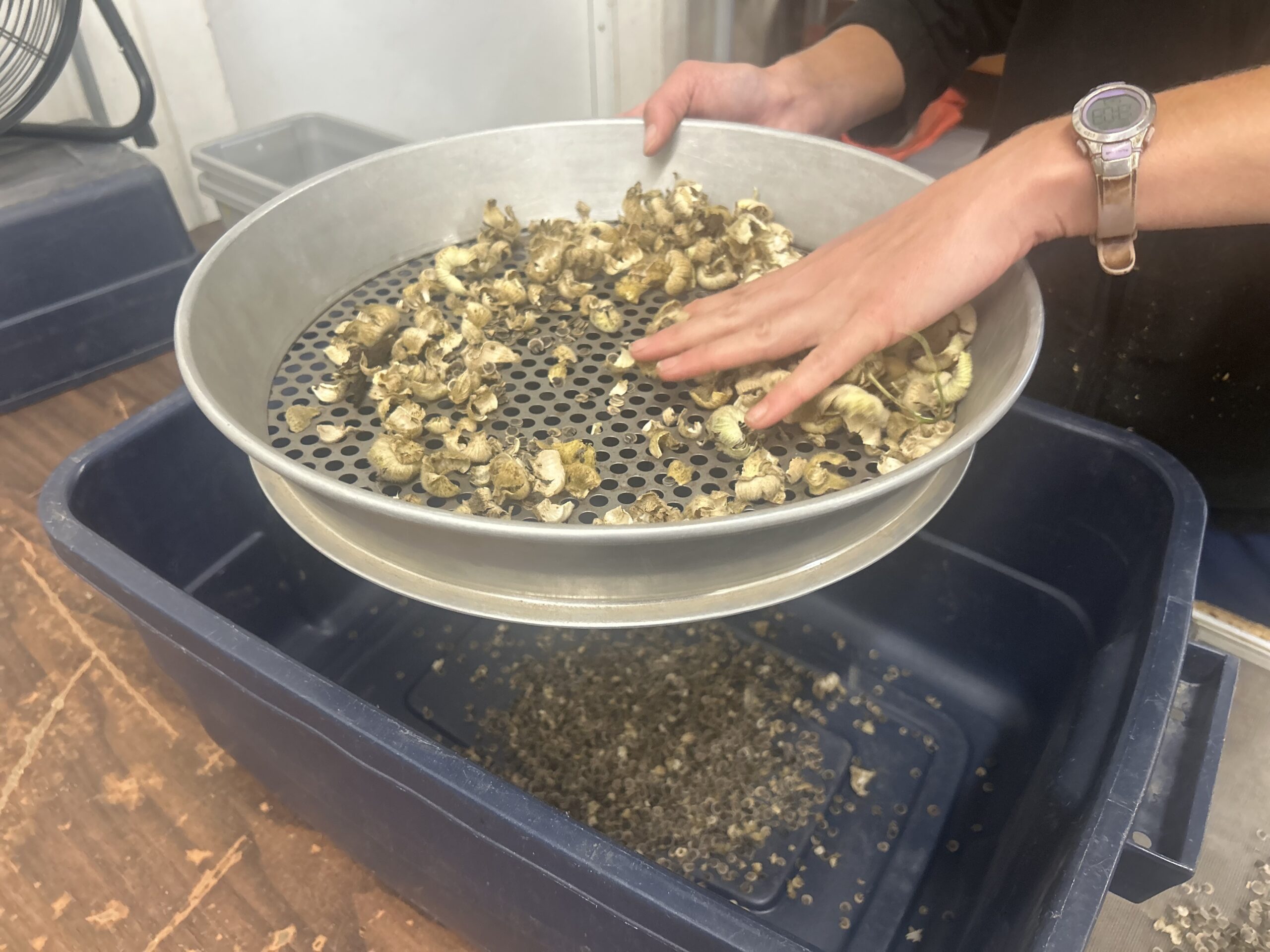 Screening is a process that helps to further separate dry seeds from the chaff by using screens of different sizes. Use a screen with holes just large enough for the flower’s seeds to fall through. Use your hands to create friction and gently rub the chaff to avoid damaging the screen. If using the correct screen size, the seeds should fall through, leaving most of the chaff behind.