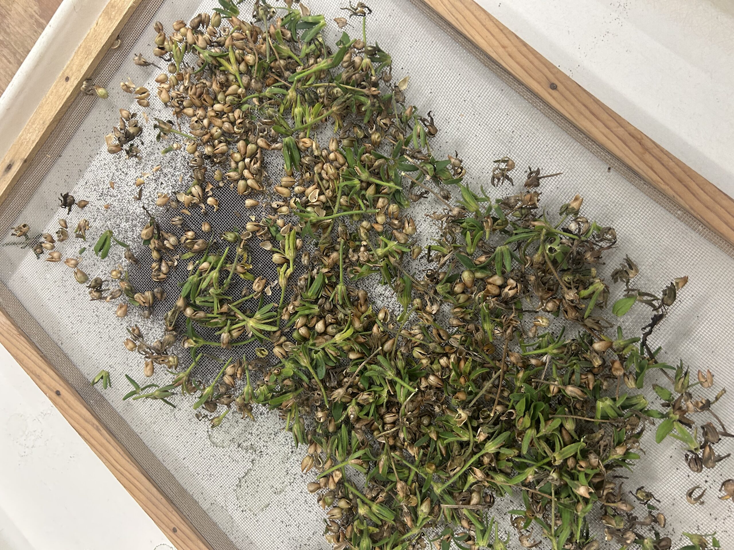 Screening can be an efficient way to separate flower seeds from the plant chaff.
